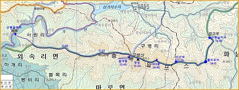 산행 들머리는 충북 보은군 장안면 서원리 300-3 번지에 있는 서원교를 지나면서부터 시작된다.