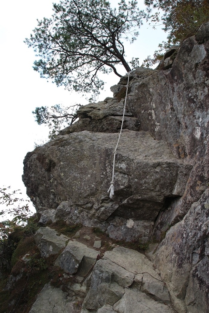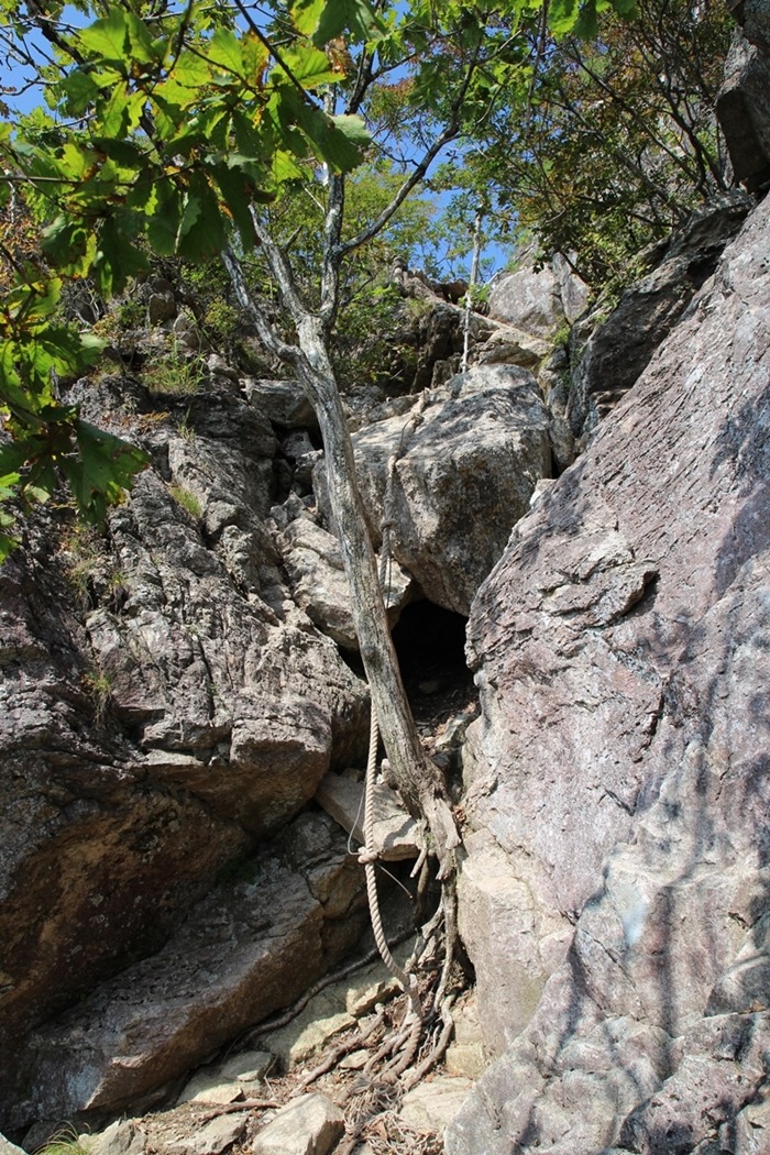 이 바위 구간의 첫머리에 나무가 있어 저 사이로 올라가기도 불편하다.