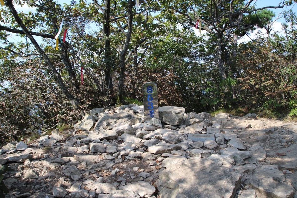 어렵게 오른 853봉은 뻘쭘하게 스텐레스 판으로 된 정상표지판이라 더 쌩뚱맞다.