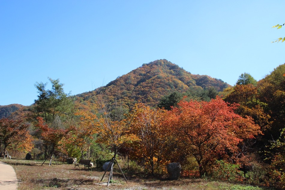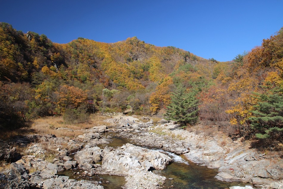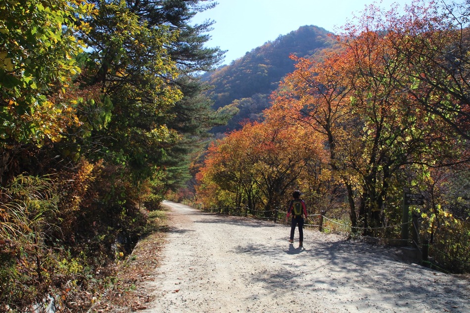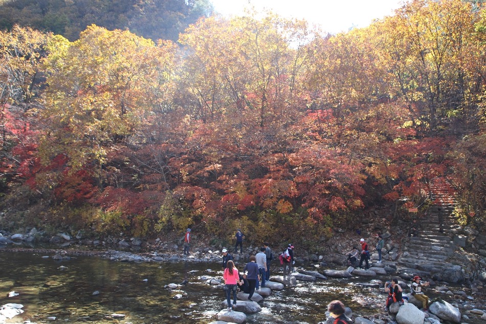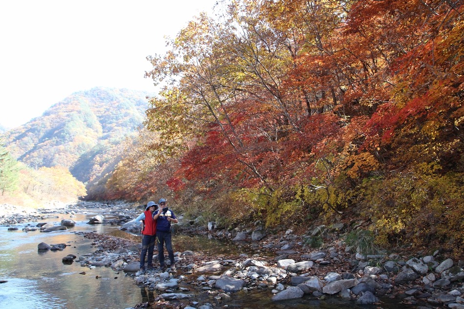 두타연 트레킹코스를 따라 여유롭게 트레킹을 시작한다. 마침 오는 날이 장날이라고 이쪽은 단풍이 한창이다.
