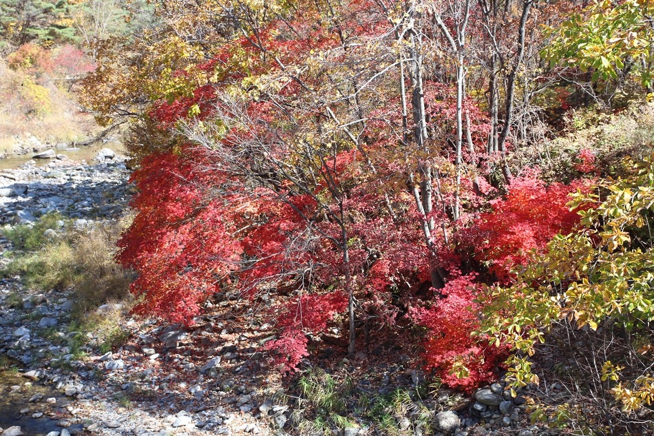 아주 간간이 붉게 물든 단풍나무도 보여주니 트래킹도 재미를 더한다.