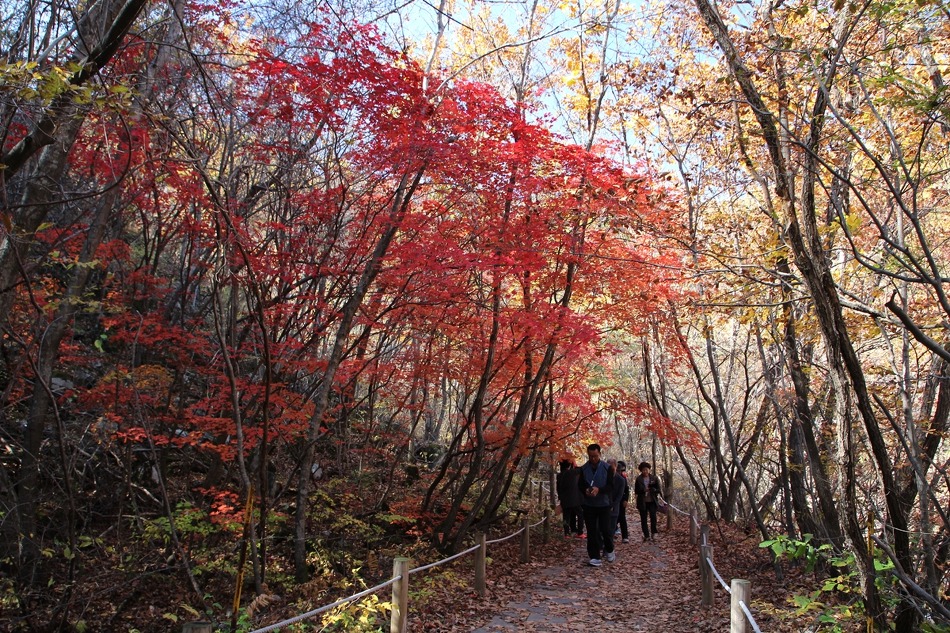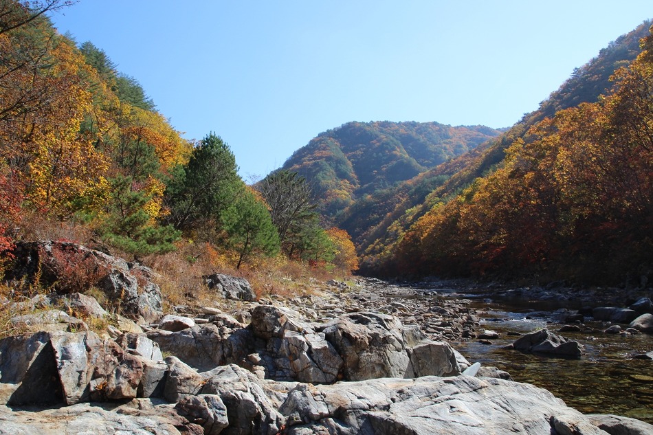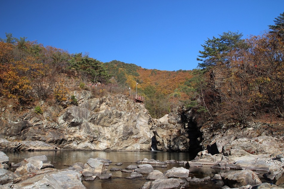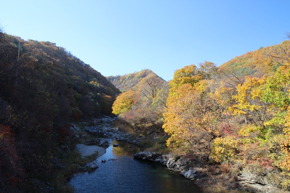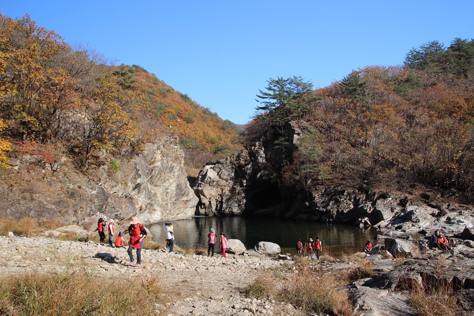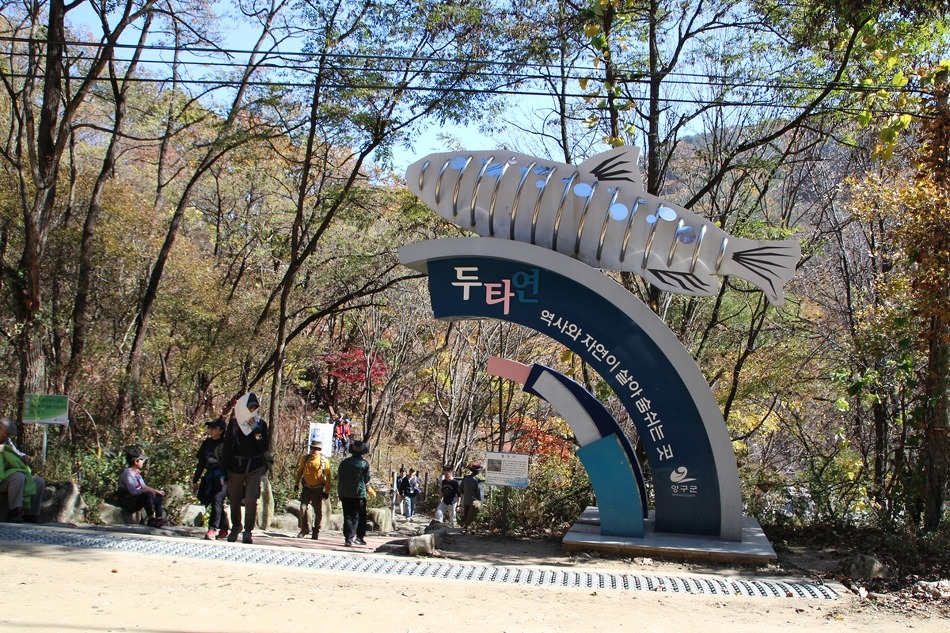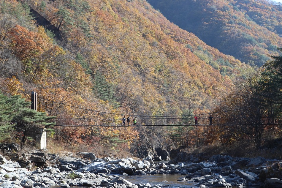 두타연 트레킹코스를 따라 여유롭게 트레킹을 시작한다. 마침 오는 날이 장날이라고 이쪽은 단풍이 한창이다.