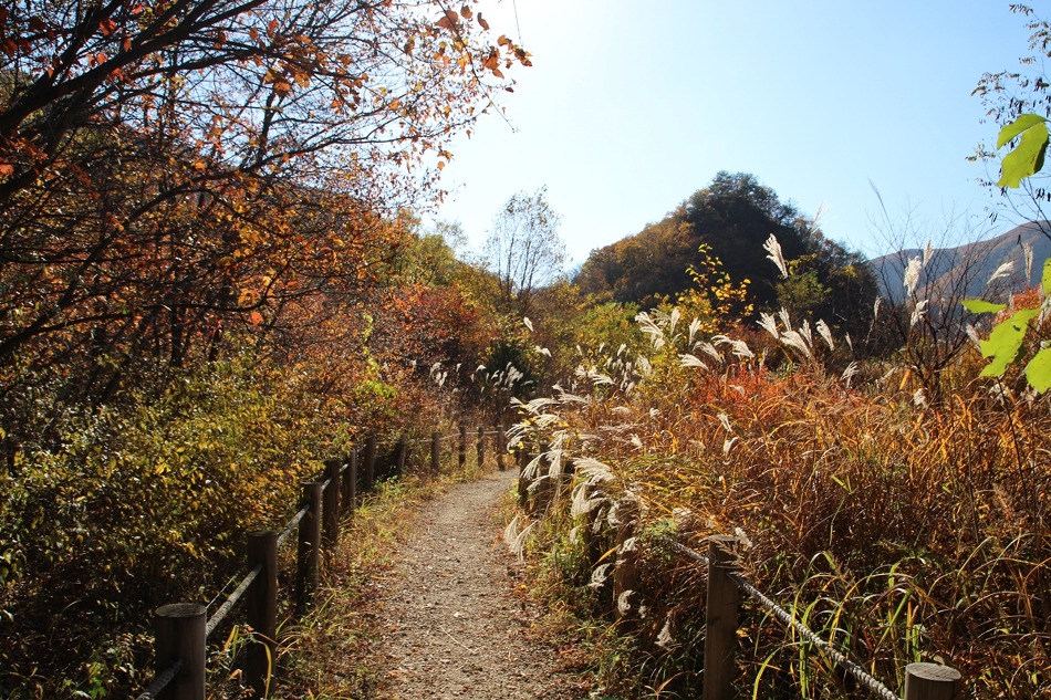 트래킹을 짧게 끝내니 두타연 인근에 있는 산책로를 돌고도 시간이 많이 남는다. 산책길은 호젓하니 단풍과 어우러진 억새가 좋다.