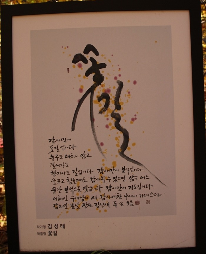 이런 가을엔 꼭 산이 아니어도 좋다. 이렇게 호젓한 길을 낙엽을 밟으며 단풍과 함께 한다면, 세상의 근심은 사라지니 자연이 주는 선물이다.