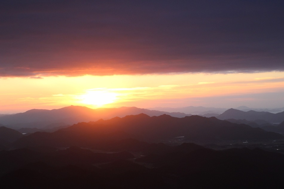 두 시간 만에 천황봉 정상에 도착했으나 일출이 시작되려면 50여 분을 더 기다려야 한다.