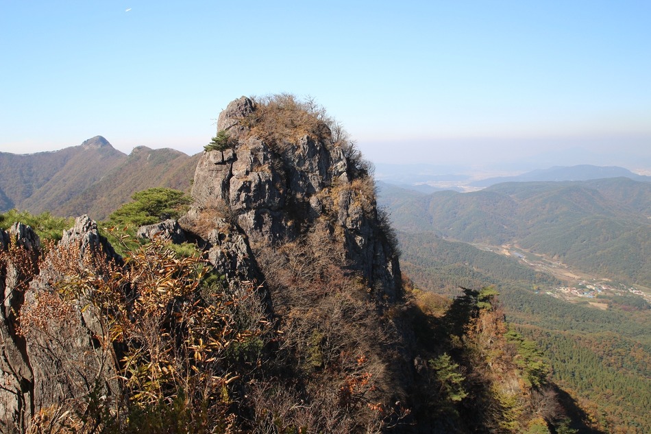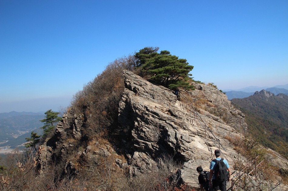 서래봉 한 칸 아래 있는 암봉도 멋지다. 서래봉은 여기서 20여m 더 올라가면 정상이지만 안 올라가고 이곳에서 삼거리로 되돌아 간다.