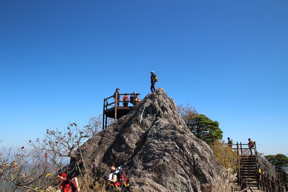 내장산은 비교적 무난한 육산이지만 군데군데 이런 암봉도 많아 산행은 고된만큼 볼거리도 많다.