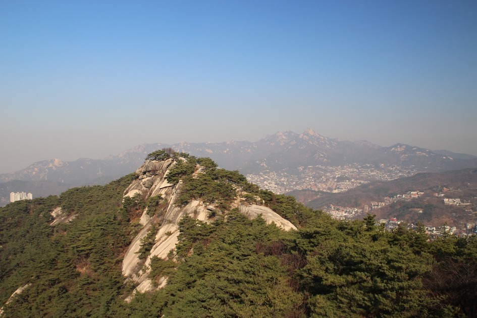 범바위에서 바라보는 인왕산 정상부, 인왕산 구간에서 청와대가 바로 보이기 때문에 사진을 찍을 수 있는 공간은 제한적이다.