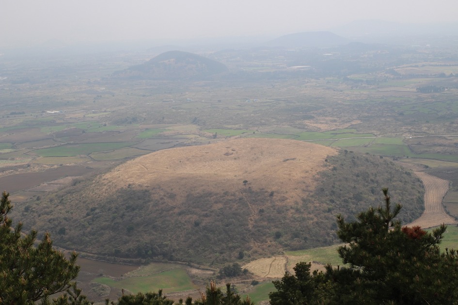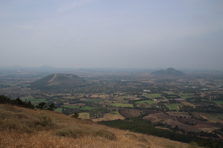 가까이 두 개의 오름과 멀리에도 오름이 보인다.