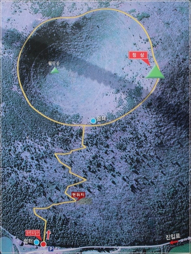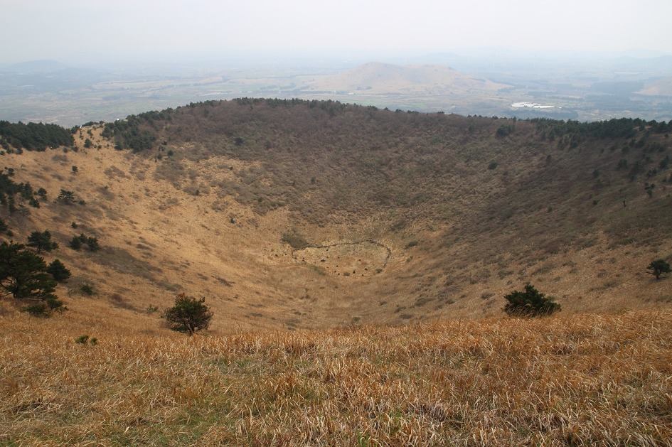 좀 전 사진보다 굼부리 형태를 좀 더 자세히 알 수 있는 높이다.