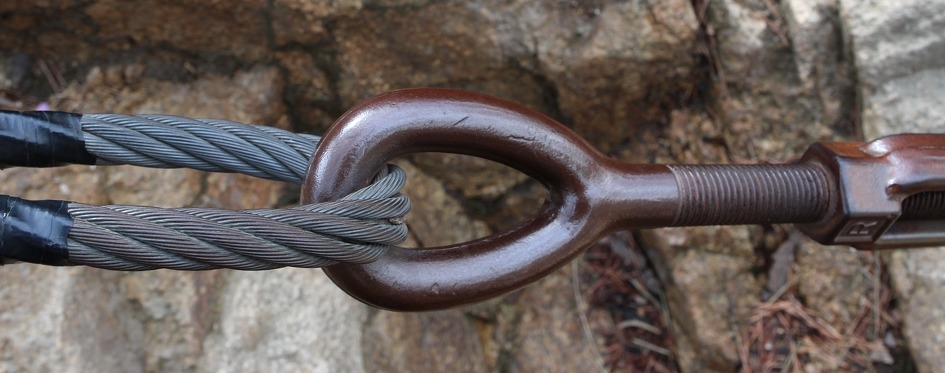 암릉구간을 오르는데 설치한 와이어로프를 고정하는 연결고리는 얼마나 많은 사람들이 잡고 다녔는지 반들반들하다.