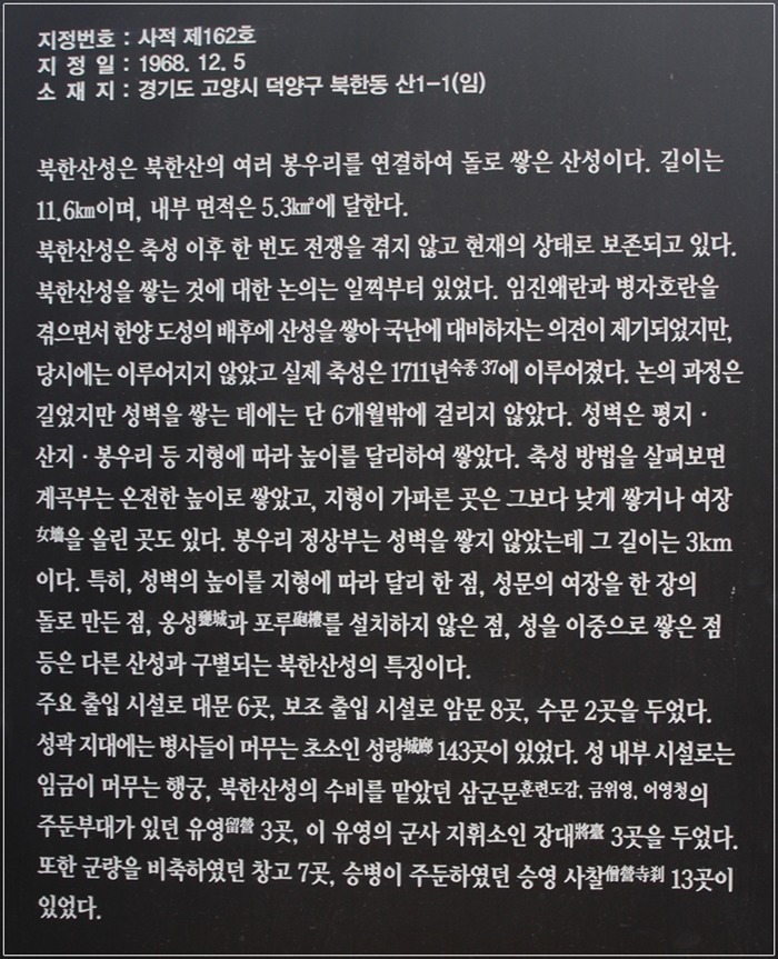 부왕동암문 앞에 설치된 안내문