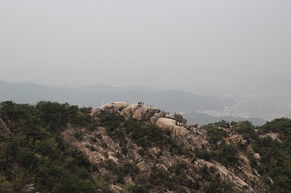 날씨는 맑다. 하지만 미세먼지가 많아 조금만 거리가 있어도 시야가 좋지 않다.