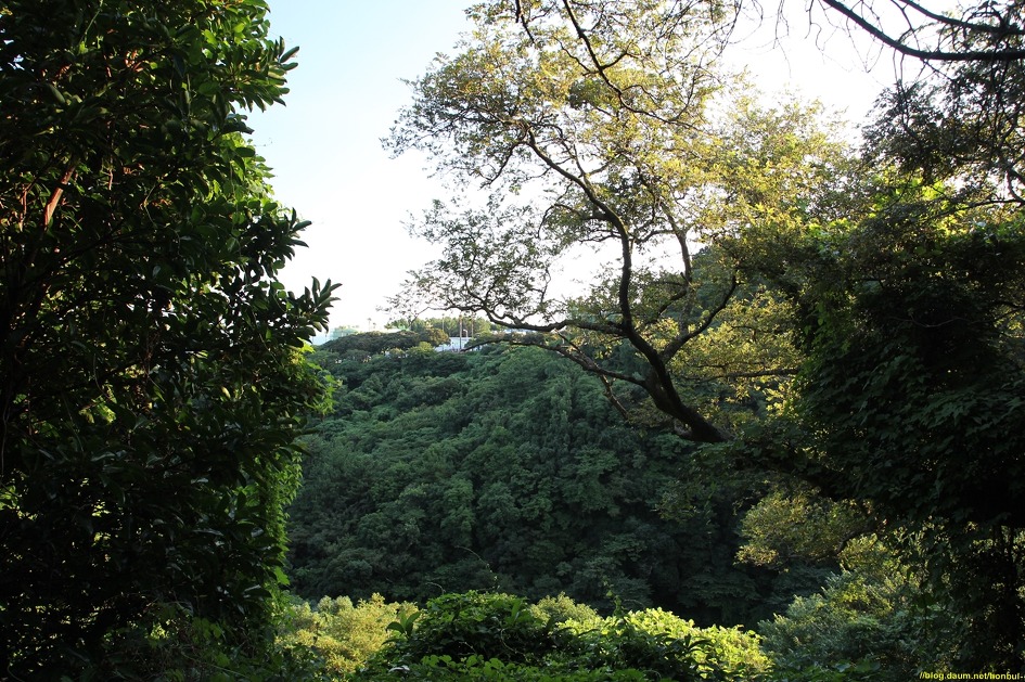 들어서는 입구부터 난대림 특유의 수목이 빽빽하게 늘어서 어두울 정도다.