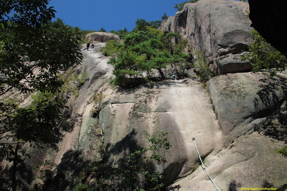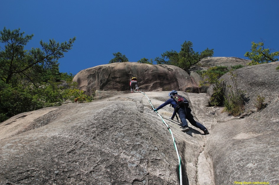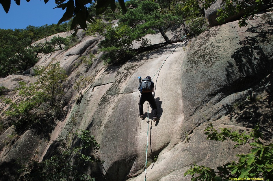 시작부터 거의 직각에 가까운 바위를 로프로 올라야 하니 릿지력이 좋은 등산화가 제격이다.