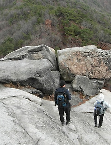 전체 글2274 북한산 증취봉 중심 2012.02.04.토 모처럼 삼각산명품코스에서 선택한 코스를 회원 17명이 따라 나선다. 지난 해 8월 인수계곡과 10월의 수락산에 이어 세 번째 산행으로 비정기적인 산행인데다 산행 전문카페가 아니므로 산우들도 그때그때 다 틀리다. 오늘은 주로 능선과 계곡을 엇지르는 산행이므로 제법 쌓인 눈을 밟고 산행해야 하는 코스인지라 제법 내공이 필요한 산행이지만 산우님들 대부분이 훌륭하게 산행을 마무리 한다. ▼ 기자촌능선으로 올라가며 보는 선림슬랩, 오늘은 눈이 쌓여 오르는 산객이 없다 ▼ 기자촌은 대충 정나 끝나고 조경수인 소나무도 제법 많이 심었다 ▼ 기자촌능선의 대머리바위와 능선 ▼ 제일 뒤로 백운대, 앞줄은 의상능선, 응봉능선이다 ▼ 뒤로 백운대, 앞쪽은 의상봉 ▼ 샘물 올라가는 데 쌓아놓은 돌탑, 참 멋 없이 되는 대로 쌓.. 2019. 5. 19. 북한산 의상능선과 상원봉능선 2012.02.05.일 산행일자 : 2012.02.05.일 날씨 : 맑으나 연무낌 산행시간 12:00-17:30(5시간 30분 휴식포함) ▼ 등산코스 어제 증취봉을 통과하긴 했지만 오로지 의상능선을 오르긴 참 오랜만이다. 2011년 11월 12성문 종주 이후 처음인데 눈까지 깔려 있어 다소 어렵긴 하지만 아직도 남장대지를 밟지 않았기에 문.. 2019. 5. 19. 북한산 백운대-사기막골능선 2012.01.23 백운대가지 올라오는 길은 영장봉에서 인수봉을 좌로 반 바퀴 빙돌아 어렵게 올라 왔지만 내려가는 길은 밤골계곡으로 내려가다 대동샘을 조금 지나 숨은벽능선과 연결된 사기막골능선으로 하산한다. 많은 사람들은 숨은벽능선이라고도 하는 데 국립공원관리공단에서 세운 이정표에는.. 2019. 5. 19. 북한산 사기막-백운대 2012.01.23 새해 들어 벌써 1월 중순이라지만 음력 설날 아침이고 보면 백운대를 등반하면서 새해 다짐을 하는 것도 의미있겠다 싶어 집을 나서기 전에 북한산 날씨를 보니 영하 15도에 낮 최고 영하 5도로 예보된다. 올 들어 가장 추운날씨다. 북한산에 갈 때 마다 어느 코스를 탈까 고민이 많은데 막상 백운대로 정해졌어도 또다시 등로 선택의 문제가 복잡하다. 우선 백운대를 탈 수 있는 가장 가까운 거리에 주차비가 없는 국사당으로 정하고 도착하니 제일 추운 설날 아침이라 주차된 차량은 단 한 대 밖에 없다. 바로 사기막능선을 타면 코스가 지리하다 싶을 정도로 길기에 밤골계곡으로 올라 가면서 얼음폭포 몇 장 사진에 담고 사기막골 능선을 넘어 인수봉 둘레길을 지나 인수야영장에서 인수암, 백운산장을 거쳐 위문으로 백운대를 오르.. 2019. 5. 19. 북한산 증취봉-나월봉 2012.01.08.일 어제 소백산을 다녀와 뒤척이다 느즈막히 일어나 아침을 먹고 밍기적 거리다 진관사에 도착한 게 12시다. 산천사를 거쳐 증취봉으로 오르려던 생각이 삼천사의 아스팔트 길을 걷는 게 내키지 않아 고개길에서 그대로 응봉능선을 타면서 잠시 후 오를 옆 능선의 의상능선에서 증취봉을 찾아본다. 의상봉은 멀리서 보니 봉이란 느낌이 들지 않아 헷갈렸지만 엄지바위와 테트리스바위로 결국 용출봉을 찾아내 위치로 증취봉을 확인하고 삼천사 계곡으로 하산한다. ▼ 응봉능선의 바위를 타고 올라오는데 노간주나무가 고사되었지만 바위에서 만나는 노간주나무는 강철같은 단단함으로 그 어느 나무보다 신뢰한다 ▼ 방금 올라온 응봉능선 ▼ 지나온 응봉능선 ▼ 좌부터 의상봉은 봉우리로 느낄새도 없이 용출봉이 나타나고 다음이 용혈봉 그리고 오늘 타야.. 2019. 5. 19. 북한산 밤골계곡의 빙폭 2012.01.23 산행일자 : 2012.01.23(설날) 날씨 : 맑음 -14~-4(북한산, 기상청예보) 백운대 가는 코스 중 하나인 밤골계곡을 지나며 찍은 빙폭만 모아본다 2019. 5. 19. 북한산_지장암능선 합궁바위 19금 2012.01.01 새해 첫날인 오늘은 지장암능선의 합궁바위를 볼 생각이다. 정초부터 웬 말이냐고 반문할 지 모르지만 전부터 이 합궁 바위를 보고 싶었지만 능선을 잘못 타 법안사능선으로 내려가 해골바위로 올라오는 바람에 보질 못 해 오늘은 꼭 보리 란 다짐을 하고 집을 나선다. 사기막골능선을 타면 능선이 좀 지루하여 밤골계곡으로 올라가는 데 폭포들이 전부 얼어 제법 운치있는 빙폭을 보여 준다. 몇 장의 사진은 "빙폭"편에 따로 올렸다. 폭포 두 개를 지나 바로 사기막골능선으로 오른 다음 인수봉 둘레길로 접어들어 영봉 방향으로 아무도 다니지 않은 길도 질러가며 어렵게 영봉능선을 만난다. 영봉에서 인수봉과 사방을 둘러보고 육모정쪽으로 내려가며 도선사를 보고 지장암능선이 어느 쪽인지 방향을 잡아본다. 인터넷 조회를 했을 때 우이.. 2019. 5. 19. 북한산 빙폭 2012.01.01 새해 첫날의 등산은 밤골계곡으로 오르다 사기막골능선을 넘어 사기막계곡을 지나 영봉으로 오른 후 지장암능선 에서 돌아 옆 능선의 염소바위(괴물바위)를 보고 밤골계곡으로 돌아온다. 오가는 길에 한겨울의 빙폭을 보게 되어 여름의 폭포와 같이 겹쳐보는 것도 흥미롭다. ▼ 밤골계.. 2019. 5. 19. 북한산 사기막계곡_해골능선 2011.12.25 어제 산행이 힘들었는지 다리가 편치않지만 사기막계곡 백마부대 입구에 차를 대고 백마부대 유격장으로 들어간다. 부대로 하산은 더러 해 봤지만 등산로로 