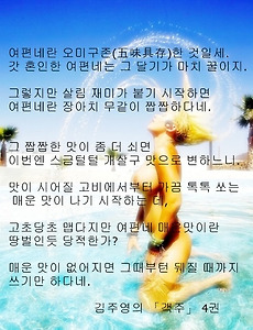 전체 글2274 강릉에서 만난 동기모임 2014.1.10금 ~ 1.11.토 강릉 동기모임 지난 가을에 이어 두 번째 동기 모임이다. 당초 연말 모임 얘기가 나왔으나 연말엔 다들 일정이 바쁘니 연초에 만나기로 한 날이 바로 오늘이다. 어제 인천터미널에서 버스를 타고 약속 장소인 강릉 강문동 소라회집에 도착했을 땐 약속시간보다 5분여 빠.. 2014. 1. 19. 당신의 산행은 안녕하십니까? 운무에 잠긴 설악산 공룡능선 2009년 하반기부터 시작한 산행은 그간 참 많은 등산으로 이어졌다. 2010년과 2011년은 각각 95회의 산행을 했으니 어느 한 해만 놓고 보더 라도 웬만한 사람들이 평생토록 할 산행보다 많이 한 셈이다. 보통 삼일, 세달, 삼년주기만 넘긴다면 영속성을 이어간다.. 2013. 12. 20. 원자력발전 절대반대 '91년 춘천에 근무할 때, 강원도 삼척에 원자력발전소를 짓겠다는 발표가 있자 강원도 지역에서 반대운동이 있었다. 그때는 소련의 체르노빌 발전소 사고로 수많은 인명피해가 있은 후 몇년 지나지 않은 때라 "원자력발전 절대반대"란 제목으로 강원일보에 투고했는 데 시기가 적절했는.. 2013. 11. 30. 입사 28주년 동기모임 2013.10.12.토 강촌 구곡폭포 85년 12월 입사한 동기 열 명 중 한 명은 아내의 갑작스런 교통사고로 불참하고 퇴사한 세 명 중 한 명을 포함한 일곱 명의 전체 거주지를 감안하여 춘천의 강촌역에서 처음으로 모였다. 생활 본거지가 다 다르고 생활에 바쁘다 보니 이렇게 만나기 는 28년만에 처.. 2013. 10. 18. 강릉 오죽헌 관람일자 2013.10.9. 한글날 밤새 태풍이 멀리 달아났는 지 하늘은 맑고 푸르다. 그러고 보니 가을은 설악산 정상에만 내린 게 아니라 오죽헌 나뭇가지에도 올라 앉았다. 산악회 대장이 오죽헌에 아는 분이 있어 무료입장에 상세한 안내까지 받았다. 오래전 아이들을 데리고 온 기억이 나지.. 2013. 10. 10. 사레와 캠프 2일차 그젯밤 1시가 넘어서 취침한 데다 어제는 새벽 4:25에 기침하였기에 취침 시간은 겨우 세 시간에 불과하고 오랜 시간 차량탑승으로 피곤하여 엊저녁은 일찍 취침했다. 꿈같이 달콤한 숙면을 취하다가 새벽 네 시 반에 잠을 깼는데 옆에서 주무시는 분이 코골이를 심하게 한다. 보아하니 한.. 2013. 9. 9. 사레와 캠프 1일차 참 좋은 등산복이 있다. 하지만 돈이 넉넉하지 않아 광고를 때리지 않는, 그럼에도 입소문을 타고 꾸준히 팔리는 등산복과 등산용품으로 독일산 "사레와"가 있다. 일산사레와산악회 가입 후 몇 번 등산을 따라 다녔지만 그동안 장만한 등산복이 영 떨어질 기미가 없으니 괜히 과소비할 이.. 2013. 9. 9. 세차 아내 차를 직접 세차하기는 몇 년만인 지 모른다. 지난 달, 차량 구매 5주년이 지났다는 축하 문자를 받았으니 벌써 5년 1개월이 지났다. 처음 한두 번은 셀프세차를 해 준 기억이 나지만, 그 이후 지금까지 기억이 없다. 내 차였다면 적어도 한 달에 한 번 정도는 세차를 했을 텐데, 아내가 .. 2013. 8. 31. 살인진드기의 공포 갑자기 봄부터 일본과 중국에 진드기에 의한 사망자가 발생했다는 뉴스가 외신을 타고 흐르더니, 계절이 바뀌어 산하가 신록으로 뒤덮이면서 우리나라에서도 사망자가 생겼다는 뉴스가 들리는가 싶었는 데 최근들어 뉴스 발생빈도가 늘고 있다. 과문한 지 몰라도 작년까지만 해도 살인.. 2013. 5. 30. 우째 이런 일이 사무실에서 깜박 졸다 전화 벨소리에 화들짝 놀라 수화기를 들고 응대를 하려는 데, 평소보다 수화기 줄이 짧아 이상하다 싶어 쳐다보니 으~~윽 이런 젠장........ . . . . . . . . . 잠결에 집어든 건 마우스였다. 2013. 5. 16. 영신군 리이(李怡) 묘역 파주로 발령 받기를 기대했지만 2순위로 지원한 북인천에 근무하게 된지도 벌써 만 2개월이 다 되어간다. 인천지역은 처음 근무하는 곳이지만 두어 번 산책한 결과, 사무실 주변에 그리 볼만하 데도 없고 지도를 검색해봐도 마땅히 갈만한 데도 없기에 사무실에만 있다가 벚꽃이나 개나.. 2013. 4. 18. 몸살과 백발 지난 일주일은 일생에서 가장 혹독한 감기 몸살을 앓은 한 주 였다. 3.1절인 금요일과 다음날인 토요일까지 이틀간 산행을 잘 하고 일요일에 잘 쉬었으니, 모처럼 3일 연휴를 잘 쉰 셈인 데 월요일에 갑자기 시작된 몸살은 어깨나 등 위로 스치는 옷의 느낌에서 조차도 아프던 살갖이 화요.. 2013. 3. 9. 2월의 입춘대설 2월 4일 입춘에 내린 입춘대설을 게으른 핑계대고 이제야 올린다. 2월에 내린 눈으로는 12년만의 대설이라고 서울엔 16cm의 눈이내린 날, 출근하면서 본 아파트 풍경. 사무실 출근하여 잠깐 우체국 가는 길에 본 풍경 이제 이런 눈도 봄이 가까워지니 볼 날도 거의 없을 테지.... 2013. 2. 10. 여편네 맛 2013. 1. 31. 이런 어이없음이라니.... 출근을 앞두고 식사를 하며 본 TV화면의 서울 온도는 -12.8℃이다. 이미 한겨울에 들어섰으니 제법 추위에 내성은 생겼다지만 소매끝으로 스며드는 냉기가 제법 쌀쌀하다. 어제 보다 추운 날씨니 당연한 건가? 우리 동 주차장은 지하1층 밖에 없지만 옆 동 주차장은 3개 동이 합동으로 쓰는 .. 2013. 1. 10. 자가용 30만km 주행 소감 차량을 얼마만에 교체해야 적당하다는 말을 들을까? 요즘 추세에 비추어 젊은이라면 대략 3년 주기의 교체설이 나올테고 좀 더 나이가